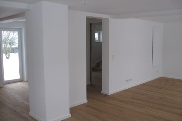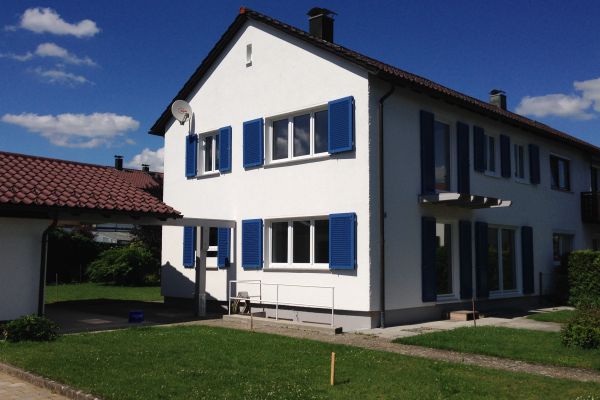 typisches Siedlungswohnhaus mit 2 kleinen Wohnungen im EG und OG. Die Grundrissstruktur aus Bestand wurde weitgehend erhalten. Aus 2 Wohneinheiten wurde eine großzügige Einheit mit offenem Wohn-,,Ess- und Kochbereich im EG, neues großes Bad. Energetische Sanierung, Heizung, Sanitär und Elektro neu. Die Fassade erhält wieder wie ursprünglich Fensterläden.